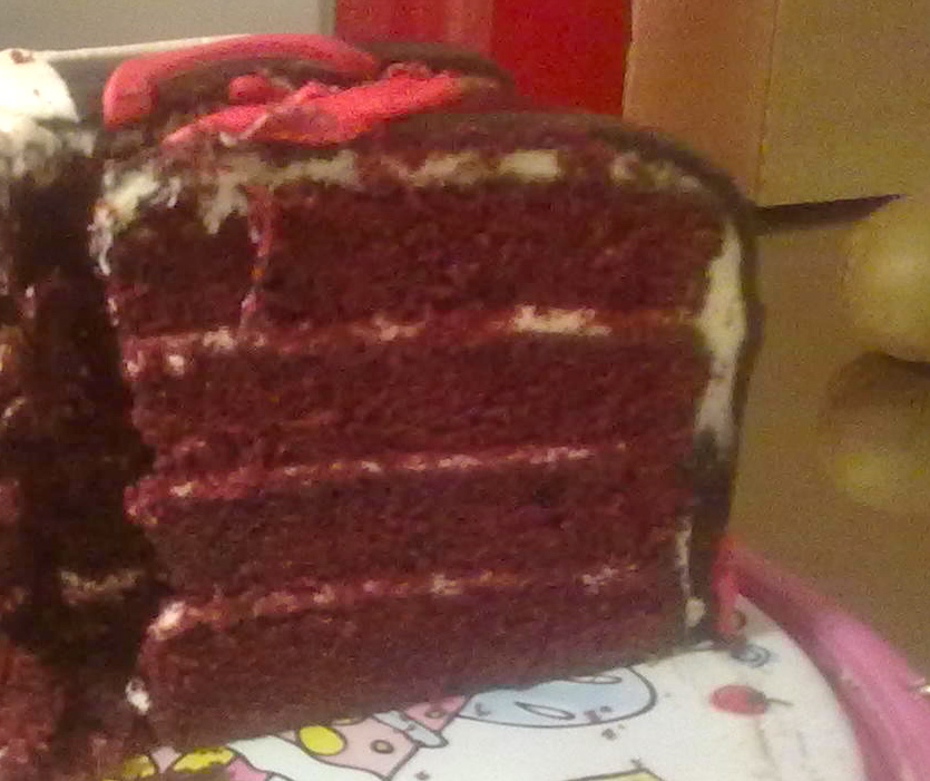 De return of the red-velvet cake! Eerder had ik al de taart voor Dorien gemaakt met het recept van Lorraine Pascale, dit keer een dubbel hoge versie voor een togataart ter ere van het einde van mijn stage bij Bousie Advocaten: