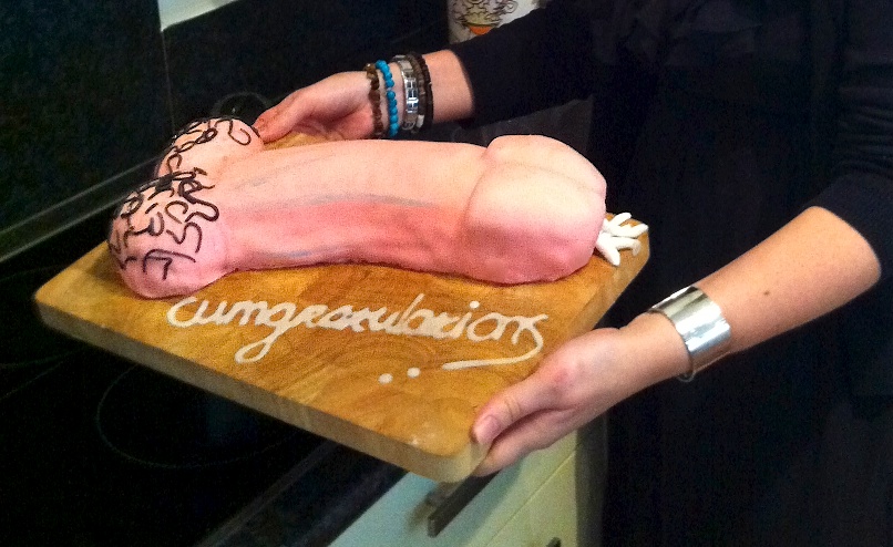 Mijn hele goede vriendin Andrea gaat trouwen en ik mag getuige zijn! Geweldig nieuws natuurlijk, maar ook aanleiding om het vrijgezellenleven eens goed te vieren! Afgelopen zaterdag was de bacheloretteparty. Omdat het een vrijgezellendag was en de achternaam van de bruidegom ook nog eens Cox is, was het thema snel gevonden: piemels! Mijn bakkershanden gingen jeuken en een (voorzichtige!) google-search verder had ik mijn plan rond; een carrot cake in licht aanstootgevende vorm! Het maken van de taart was hilarisch!! Vooral omdat medegetuige Lisa ondertussen enthousiast piemels uit bladerdeeg aan het snijden was voor de piemelkaaskoekjes (met zwart sesamzaad op de ballen..). De gesprekken in de keuken van die avond kan ik hier niet herhalen, maar zal wel (uiteraard zo ondubbelzinnig mogelijk) vertellen hoe ik de piemeltaart gemaakt heb!