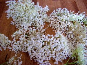 Om te beginnen moet je vlierbloesems plukken. De vlierstruik komt aardig veel voor in parken en plantsoenen, dus dat zou niet al te moeilijk moeten zijn. Ik knipte stiekem wat weg van de struiken langs de singel. Ga voor de open bloempjes met lekker veel stuifmeel, in het zonnetje lukt dat het best. Vermijd laag hangende struiken in verband met honden… De bloeitijd is mei tot juli.