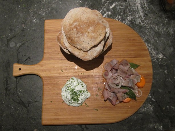 Op dag zeven is de haring goed op smaak, tijd dus om er knäckebröd bij te maken. Dat vond ik geen gemakkelijk klusje. Het deeg kan nat en kleverig zijn en daardoor moeilijk te bewerken. Maar een brooddeeg dat niet nat is om mee te beginnen is geen goed deeg. Flink kneden is de enige oplossing. Of een pakje knäckebröd kopen, dat kan ook.